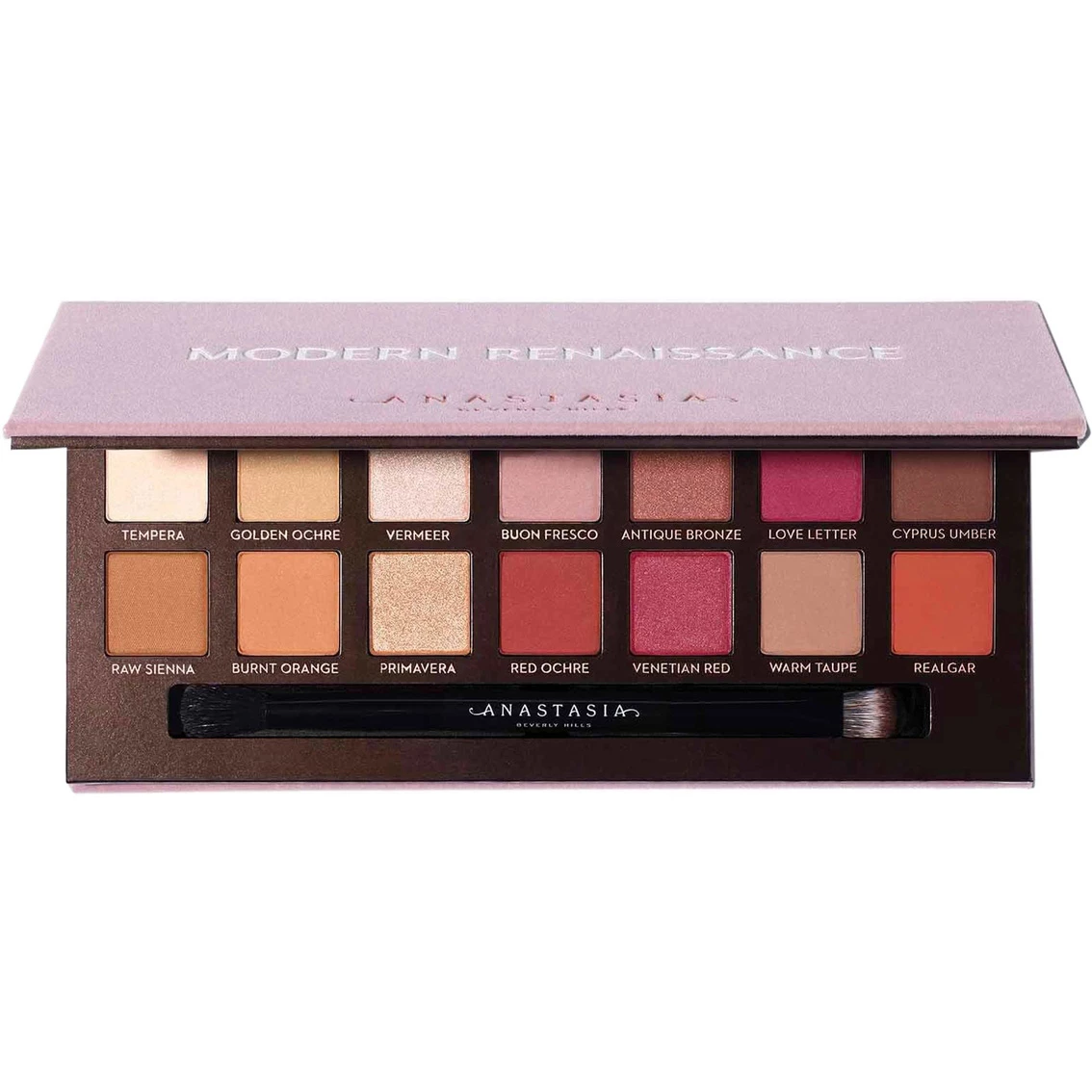 Inspired by the resins and paints of Renaissance art, Anastasia Beverly Hills Modern Renaissance Eye Shadow Palette contains 14 full-pigment shades ranging from neutral to berry tones in matte and metallic finishes. This essential eye shadow collection features ABH’s highly-pigmented, easy-to-blend formula and offers a versatile color range for creating everything from subtle to dramatic eye looks for daytime and evening.