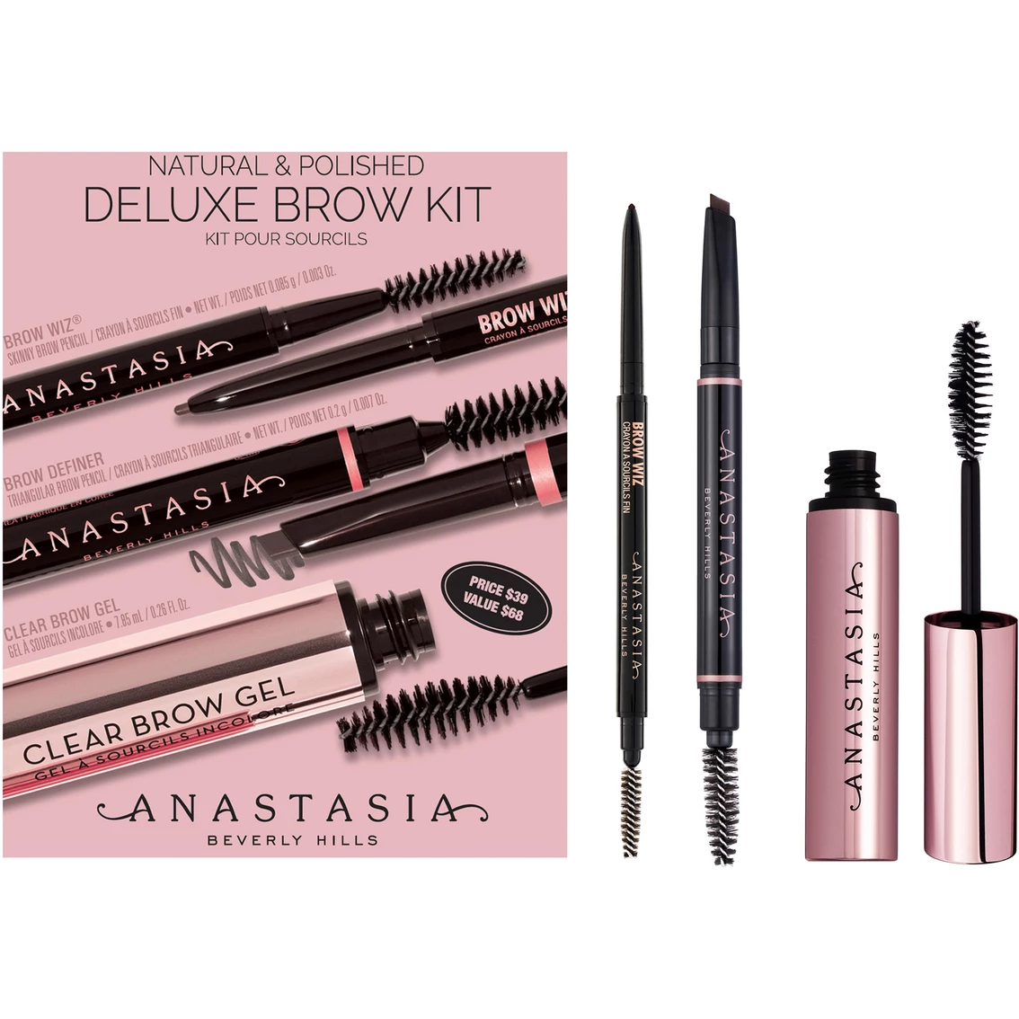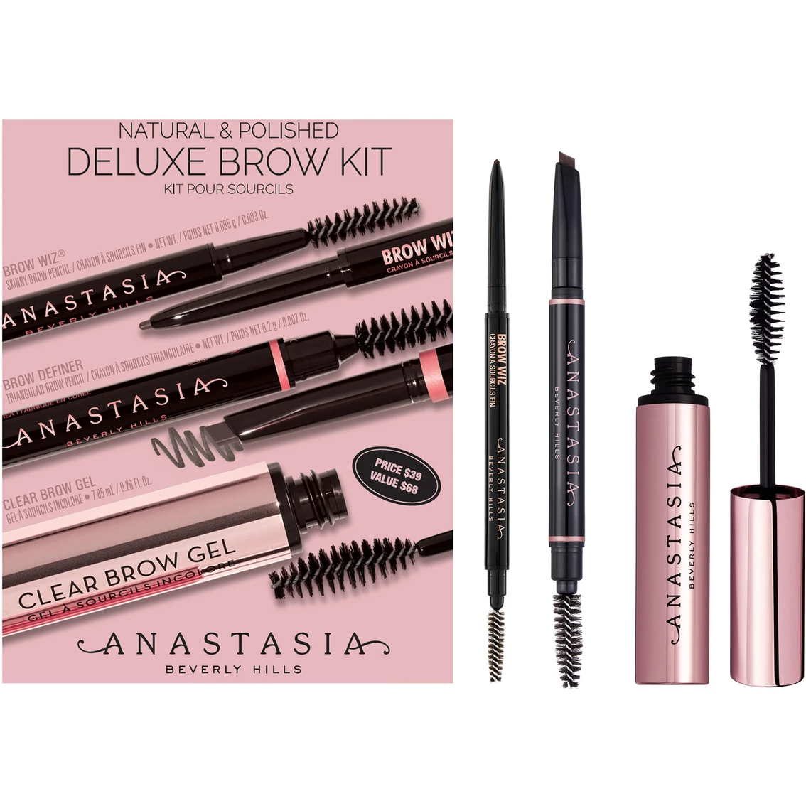 Create the perfect natural and polished brows with the Natural and Polished Deluxe Brow Kit from Anastasia Beverly Hills. Kit includes a full-sized Brow Wiz, Brow Definer and Clear Brown Gel.