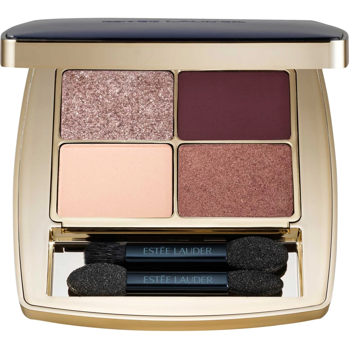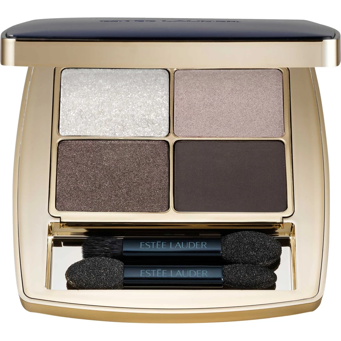 Estee Lauder Pure Color Envy Luxe Eyeshadow Quad is the ultimate self-expression for eyes that reveal every emotion. Vibrant shades, rich multi-finishes and luxe combinations that flatter everyone. Each palette features four luxe powder shadows, rich in pigment and plush in texture. The expert color pairings of flattering neutrals, unexpected accent shades and multi finishes–Sparkle, Satin and Matte in each compact–work beautifully together. The shades enhance your eye color and your skintone and build easily from a soft color wash for day to more emphasis for night. Glides on without tugging, blends effortlessly. No fallout, no flaking. No smudging or creasing. The refillable compact feels sleek and sensual in your hands. From its gleaming curves to its exceptional quality, this is modern glamour–luxury that lasts. Comes with two dual-ended applicators.