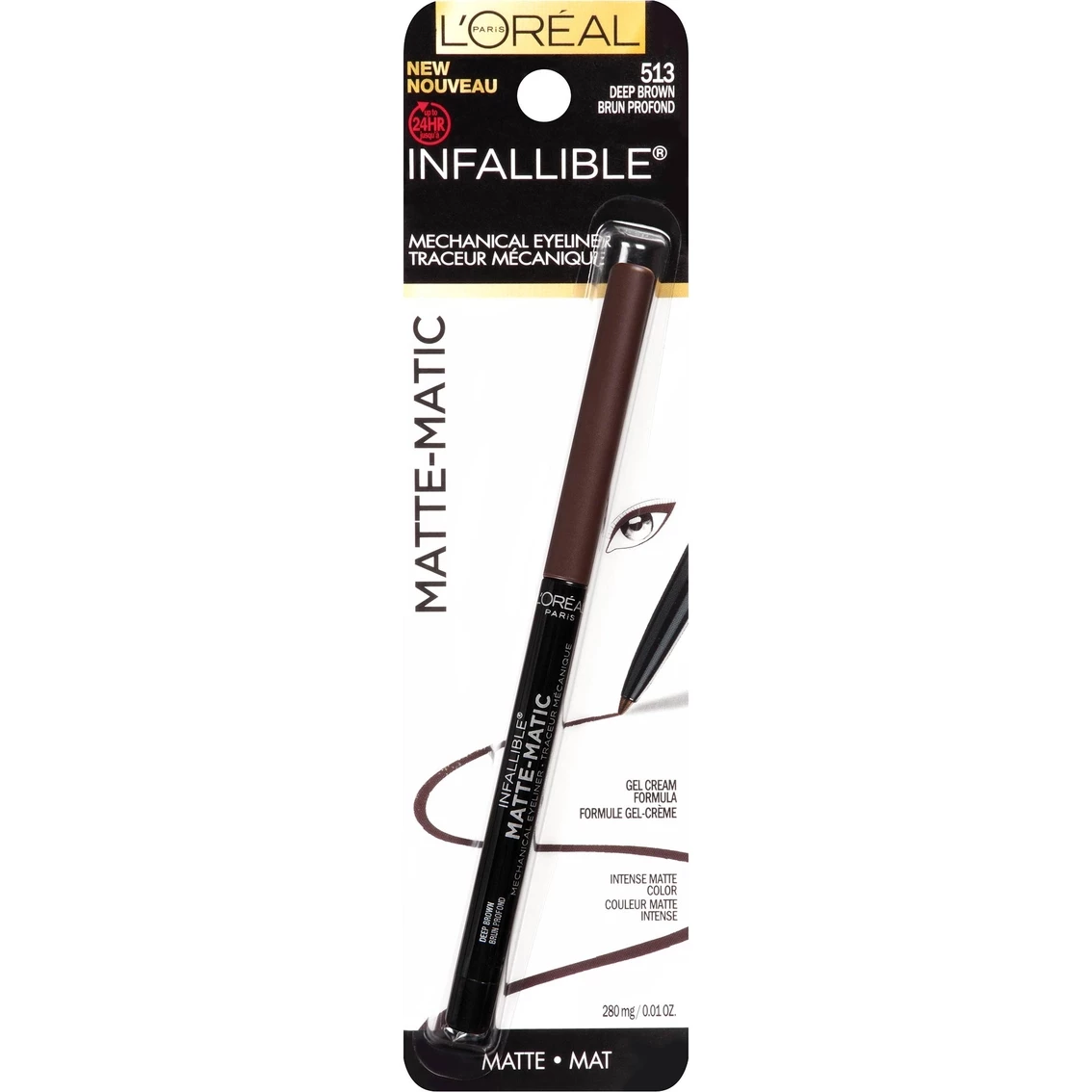 Create your signature liner look with L’Oreal Paris Matte-Matic mechanical eyeliner. The long wear, smudge resistant formula delivers intense matte color. This waterproof gel cream pencil glides on easily for up to 24-hour wear and comes with a built-in sharpener.