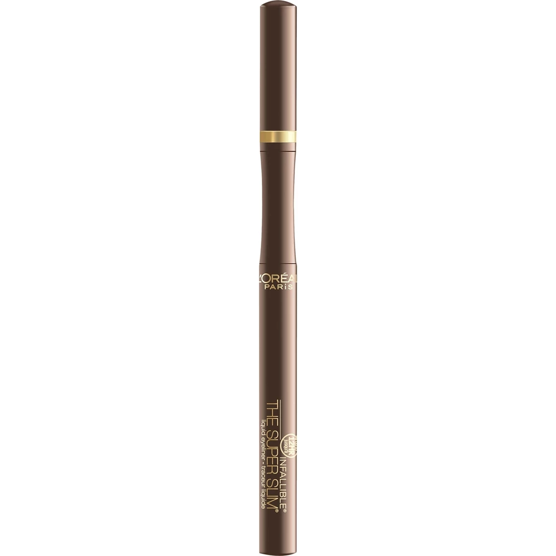 Create sleek and sophisticated eye designs with L’Oreal’s Infallible The Super Slim Liquid Eyeliner. The 0.4mm ultra-fine felt tip gives you total control, delivering the perfect amount of liner. The intense quick dry formula glides on smoothly with continuous and even flow and lasts up to 12 hours.