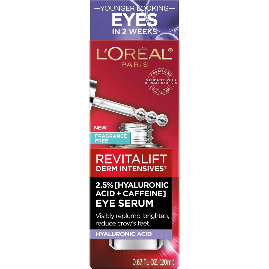 The first area that gives away our age? It is the eyes! L’Oreal’s Revitalfit Derm Intensives eye serum for younger-looking eyes in just two weeks! Revitalift Derm Intensives 2.5% [Pure Hyaluronic Acid + Pure Caffeine] daily eye serum visibly replumps, brightens and reduces crow’s feet wrinkles. This dermatologist-validated formula with optimal concentration of pure hyaluronic acid and pure caffeine is ophthalmologist tested for safety and contact lens suitable.