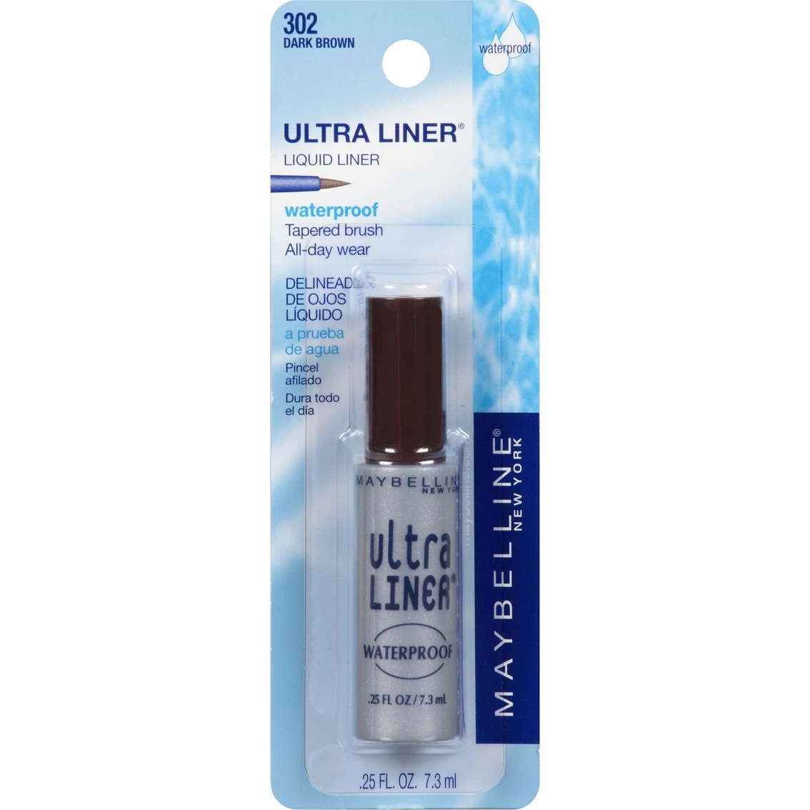 This Ultra Liner Waterproof Liquid Eyeliner from Maybelline New York features a precision brush to deliver glossy color and waterproof wear. It has been allergy tested and is suitable for sensitive eyes and contact lens wearers.