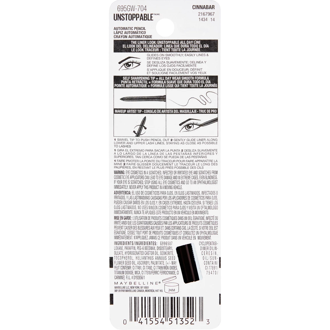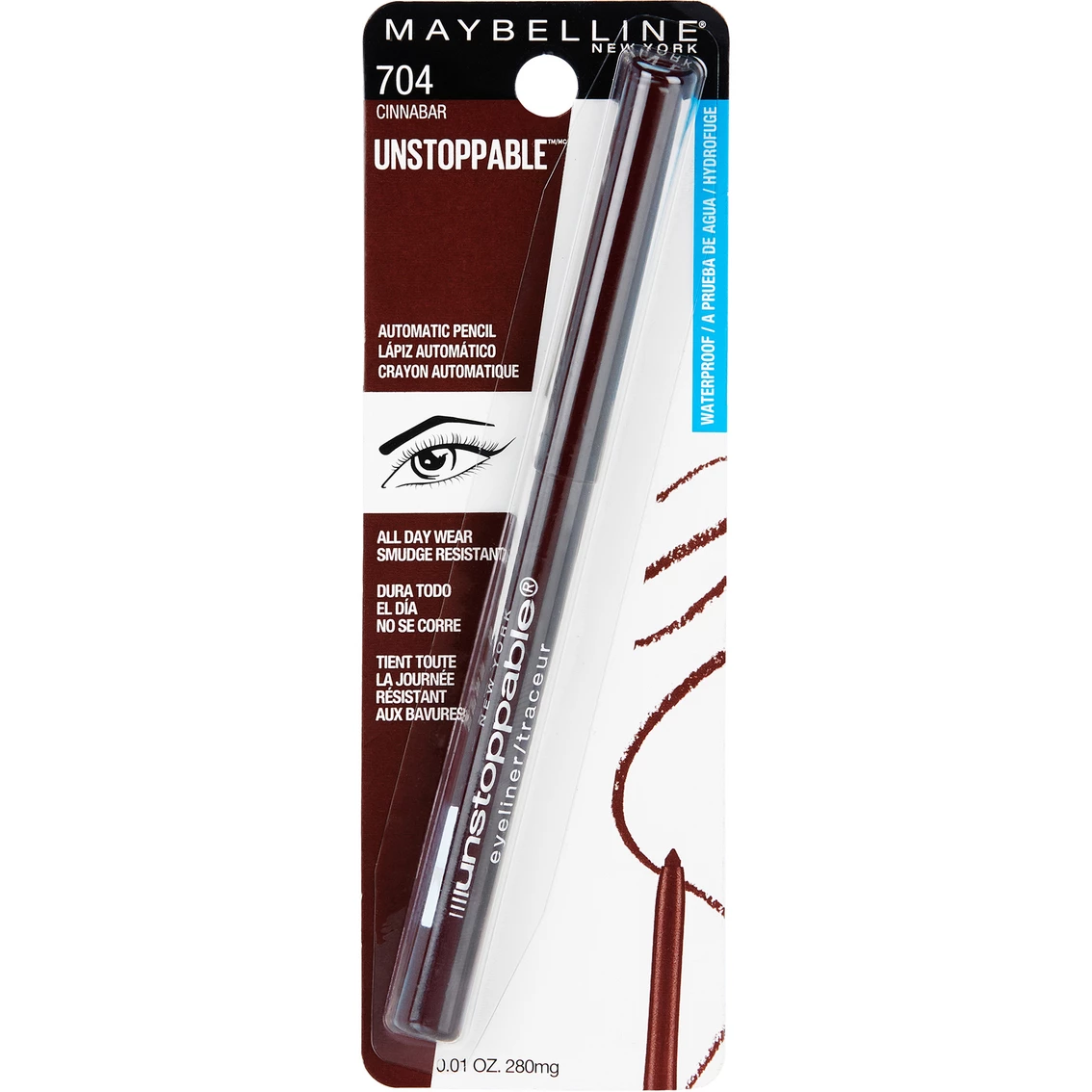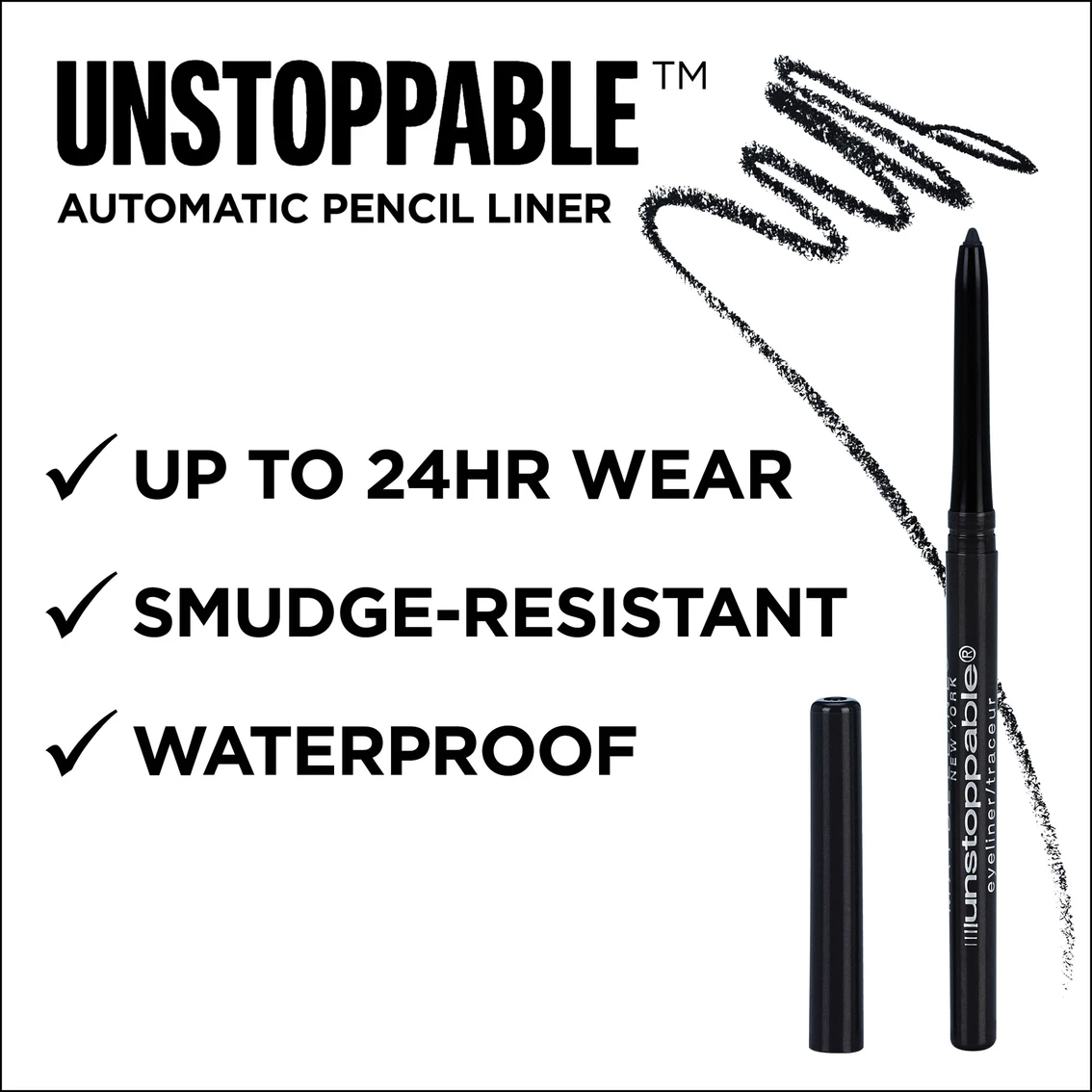From natural to bold definition, the waterproof and smudge-resistant Unstoppable Eyeliner from Maybelline New York delivers color that stays true all day. The mechanical eyeliner swivels up and down, so the point always stays sharp. It has been ophthalmologist tested and is suitable for sensitive eyes and contact lens wearers.