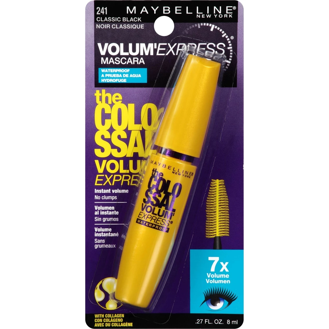 Maybelline New York Volum’ Express The Colossal Waterproof Mascara creates 7X the volume, instantly. Patented mega brush + collagen formula plump lashes one by one. Dramatic volume with no clumps.