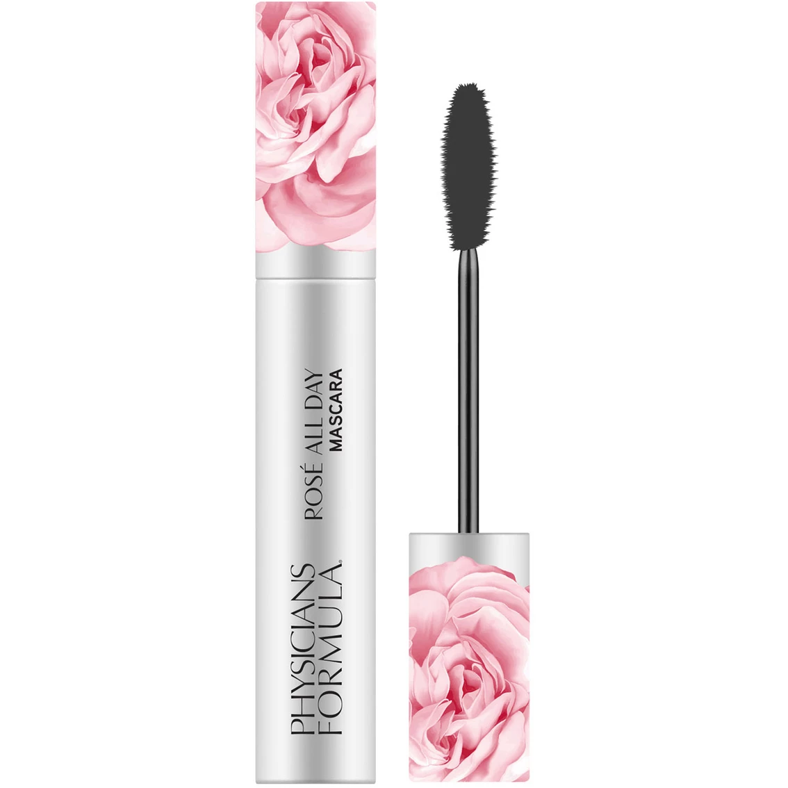 Physicians Formula Rose All Day Mascara is a highly pigmented, extremely volumizing mascara that conditions and brightens the eye. This mascara delivers an instant lift for clump-free, well-defined lashes. This high-performing mascara is infused with soothing rose water, brightening kakadu plum, antioxidant-rich goji and a lifting blend, to condition lashes for a super-dramatic look that lifts and brightens up yes making them the focus of the face. Features a non-clumping double helix brush to comb and feather lashes for defined volume.