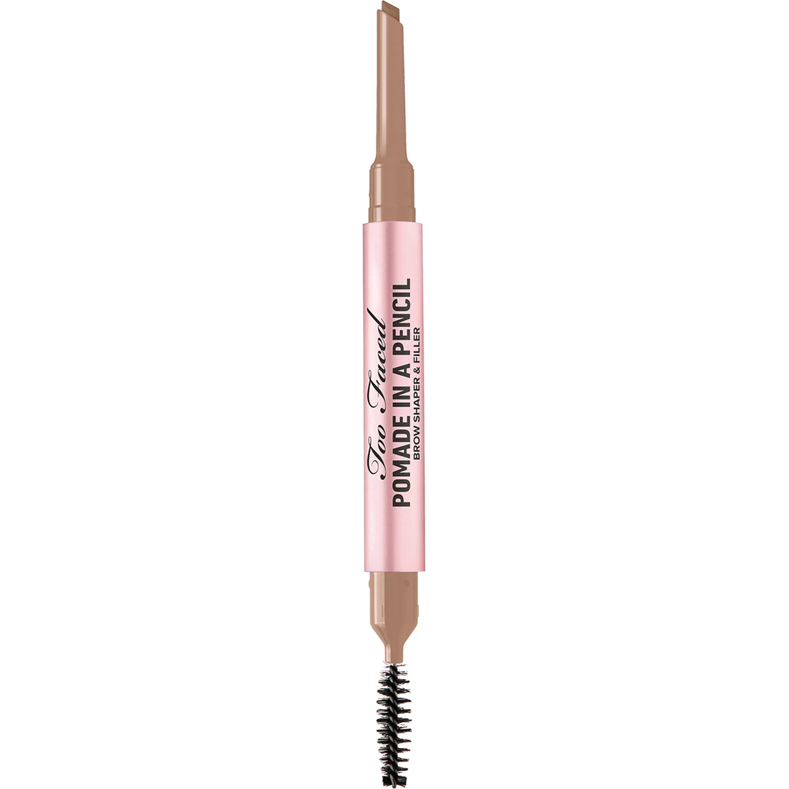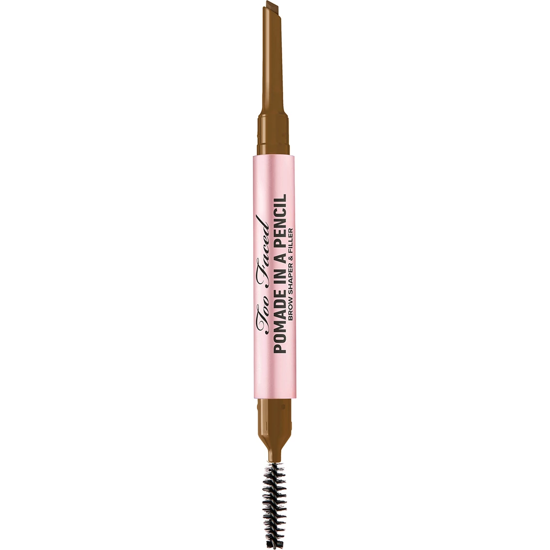 Too Faced Pomade in a Pencil Brow Shaper and Filler is an innovative 36-hour, waterproof macro pencil for easy, blendable lines! 3-in-1 formula: pencil, pomade and gel in one step. Pomade formula easily sculpts, flawlessly fills, and sets brows. Fast and easy to use. Rich color blends naturally with brow hairs. Color adheres to brows and skin for perfect coverage. Dual-ended with a dense spoolie brush for easy blending. Cruelty Free. Paraben Free. Vegan Friendly.